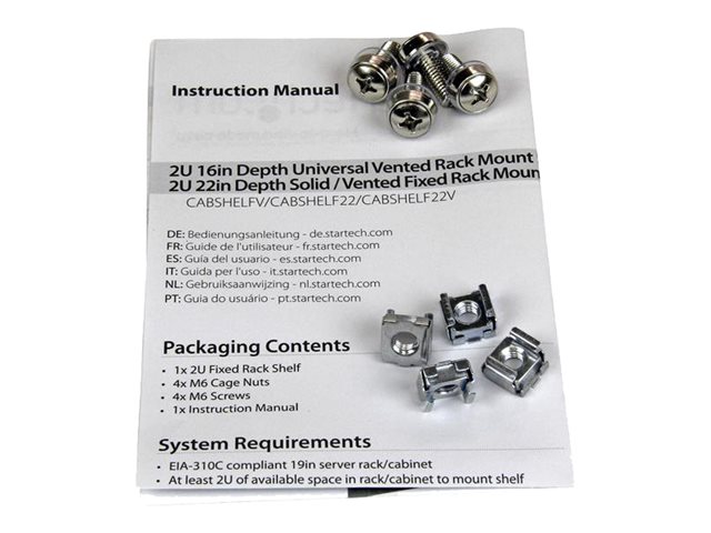 StarTech.com 2U Fixed Server Rack Mount Shelf, 22in Deep Steel Universal Cantilever Tray for 19" AV/Data/Network Equipment Rack with Cage Nuts & Screws, 50lbs Weight Capacity, 22" Deep