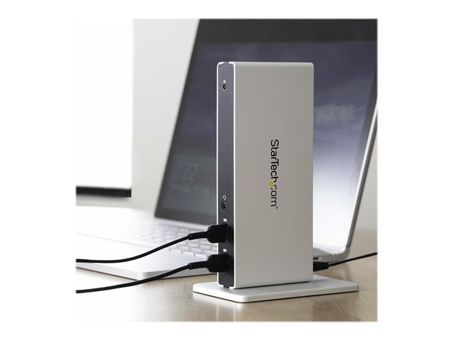 - Dock your USB 3.0 equipped Mac or Windows laptop with support for several dual monitor configurations using the included video adapters