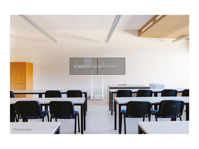 The Neomounts ADM-875WH2 is a dual screen adapter for the FL55-875WH1 mobile floor stand and WL55-875WH1 wall stand. The adapter allows the installation of 2 screens from 42" up to 65" with a maximum weight of 50kg per screen. The height adjustable brackets ensure perfect alignments of the screens. It is also possible to install an XXL display up to VESA 2000x600mm and max 100kg. The AFL-875WH1 videobar and multimedia kit can be used in combination with the dual screen adapter without any problem.