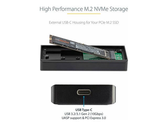 1.6ft USB-C Cable Incl - Storage enclosure - M.2 - M.2 Card - USB 3.2 (Gen 2) - black - for P/N: PEXUSB321C