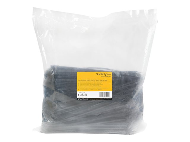 Startech 10"(25cm) Cable Ties, 1/8"(4mm) wide, 2-5/8"(68mm) Bundle Diameter, 50lb(22kg) Tensile Strength, Nylon Self Locking Zip Ties w/Curved Tip, 94V-2/UL Listed, 1000 Pack, Black