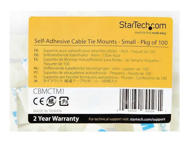 Startech 100 Pack Cable Tie Mounts with Adhesive Tape for 0.13 in. (3.2 mm) Wide Ties, Nylon/Plastic Zip Tie Mounts, Electrical/Network Cable Wrap Mounts / 94V-2 Fire & UL Rated TAA