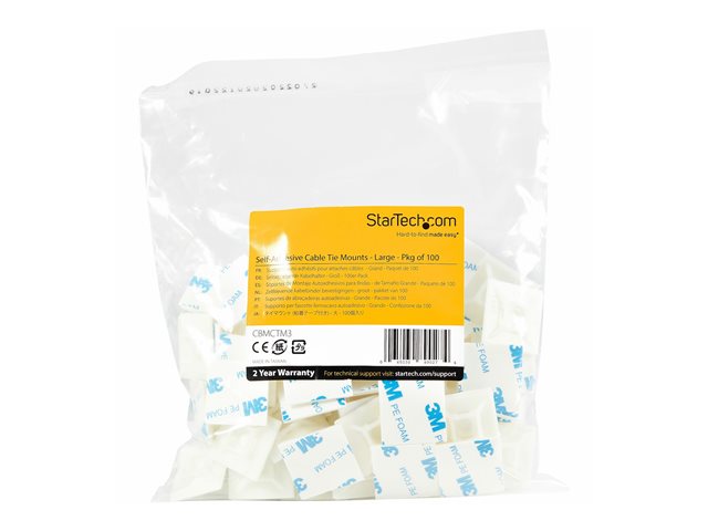 Startech 100 Pack Cable Tie Mounts with Adhesive Tape for 0.21 in. (5.5 mm) Wide Ties, Nylon/Plastic Zip Tie Mounts, Electrical/Network Cable Wrap Mounts / 94V-2 Fire & UL Rated TAA