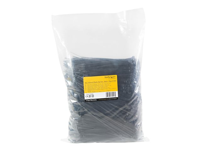 Startech 15cm(6") Cable Ties, 3mm(1/8") wide, 39mm(1-3/8") Bundle Diameter, 18kg(40lb) Tensile Strength, Nylon Self Locking Zip Ties w/ Curved Tip, 94V-2/UL Listed, 1000 Pack, Black