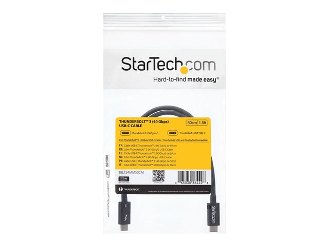 StarTech 2m (6.6ft) Thunderbolt 3 Cable, 20Gbps, 100W PD, 4K Video, Thunderbolt-Certified, Compatible w/ TB4/USB 3.2/DisplayPort
