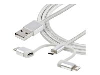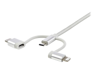 3.3 ft / 1m - Lightning / USB-C / Micro-USB - Braided - MFi Certified - USB 2.0 - 3 in 1 Charging (LTCUB1MGR) - USB cable - USB (M) to Micro-USB Type B, Lightning, USB-C (M) - 1 m - silver