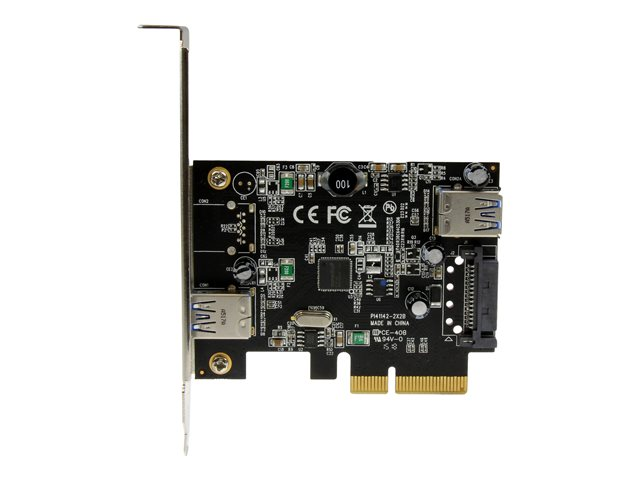 - Information Upgrade your computer to the faster speed of USB 3.1 Gen 2, by adding one external and one internal 10Gbps USB Type-A ports. This USB 3.1 Gen 2 card prepares you for the next generation of USB performance, on the inside and outside of your computer. The 2-port card adds one internal Type-A connector as well as one external Type-A connector to your desktop computer, with a combined bandwidth of up to 10Gbps. For power-hungry devices, the card also has an internal SATA power connector, enabling you to use your computer's power supply to add more power to the ports. With greater bandwidth, you can save time and avoid the performance bottlenecks that are often associated with other connectivity technologies. With an internal port, you can connect internal devices that use a USB Type-A connector, such as a front-bay SD card reader. Plus, you can use the internal port to keep peripherals safely inside your computer case - perfect for high-capacity USB flash drives or interface devices used for external wireless peripherals such as keyboards and mice or Bluetooth adapters. The card also features an external port that can be used for any USB Type-A device, like your external hard drive or any wired peripheral. By adding 10Gbps USB ports to your computer, you can harness the speed of USB 3.1 Gen 2 and rest assured that you're ready for both current and future high-bandwidth USB-A devices. With higher data throughput, this PCI Express USB 3.1 card is a necessity for external hard drives, , and many other USB 3.1 peripherals. Plus, the USB card integrates a SATA power connector to support high-powered devices, making it ideal for use with large external storage solutions. For more flexibility, you can couple the card with a USB31AC1M USB-C to USB-A cable (USB31AC1M) and connect your USB Type-C devices. Connecting your older peripherals isn't a problem. This versatile USB 3.1 Gen 2 (10Gbps) card is backward compatible with legacy USB 3.0 and 2.0 devices that use the common USB Type-A port, so you can eliminate the added expense and aggravation of purchasing new devices. For a hassle-free installation with no additional software or drivers required, the card is natively supported by most operating systems, and interfaces with the PCI Express 3.0 x4 slot on your computer. Plus, the high-quality card includes both standard-profile and low-profile (half-height) brackets, making it easy to install in full or small form-factor PCs or servers.