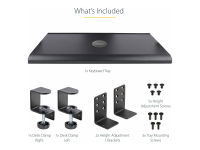 StarTech.com Under-Desk Keyboard Tray, Clamp-on Keyboard Holder, Supports up to 12kg (26.5lb), Sliding Keyboard and Mouse Drawer with C-Clamps, Height Adjustable Keyboard Tray