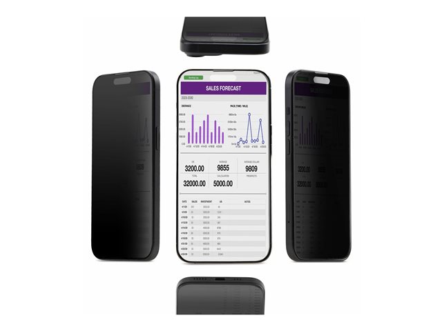 4-way, privacy filter, for portrait/landscape, touch-enabled, +/-30° view - glass - with privacy filter - 4-way - adhesive - black - for Apple iPhone 15