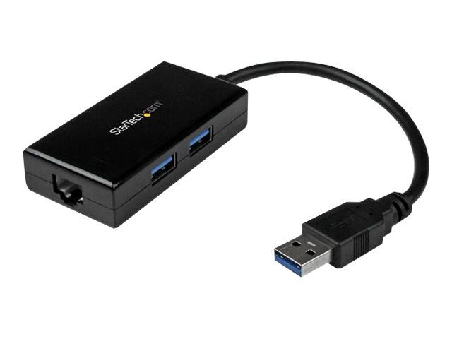 - Information Add Gigabit Ethernet connectivity and two USB 3.0 ports to your laptop or tablet through a single USB port. Add powerful network access to your tablet, Ultrabook or laptop, even if it doesn't have a built-in RJ45 port. This USB 3.0 to Gigabit network adapter gives you wired network access - and provides two USB 3.0 pass-through ports allowing you to connect additional USB devices. Ideal for office or home use, the USB 3.0 network adapter supports full Gigabit bandwidth by harnessing the performance of USB 3.0 (5 Gbps). You can quickly access very large files over a Gigabit network, saving valuable time every day. Get up and running quickly. Simply plug this Ethernet cable adapter into the USB port on your laptop and connect to your network. The network adapter chipset provides native driver support, so you don't have to worry about installing additional software. Enhance the capabilities of your laptop or tablet by connecting USB devices like printers or external solid-state drive or hard drive enclosures using the two USB 3.0 ports. You can also connect your mouse, keyboard, flash drive or other low-power USB devices, with no extra power required. Compact and portable, this USB Gigabit network adapter is the ideal desktop network adapter or laptop accessory. You don't have to carry a power adapter with you to use it, because it's powered directly from the host USB port.