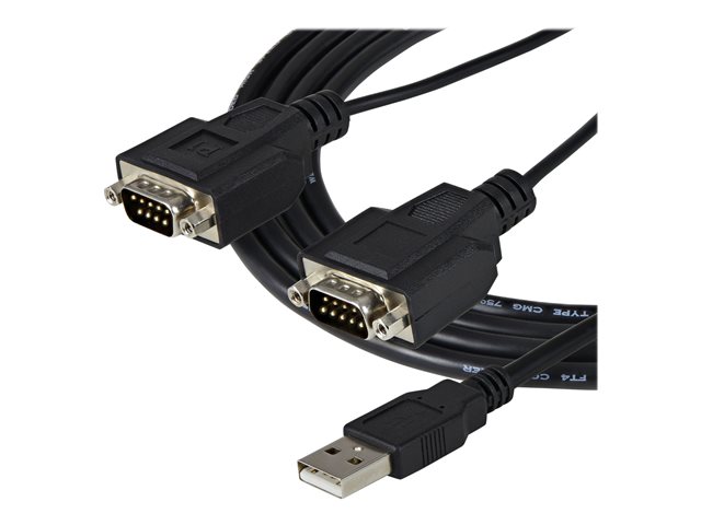 2 Port - COM Port Retention - FTDI - USB to RS232 Adapter Cable - USB to Serial Converter (ICUSB2322F) - Serial adapter - USB - RS-232 x 2 - black