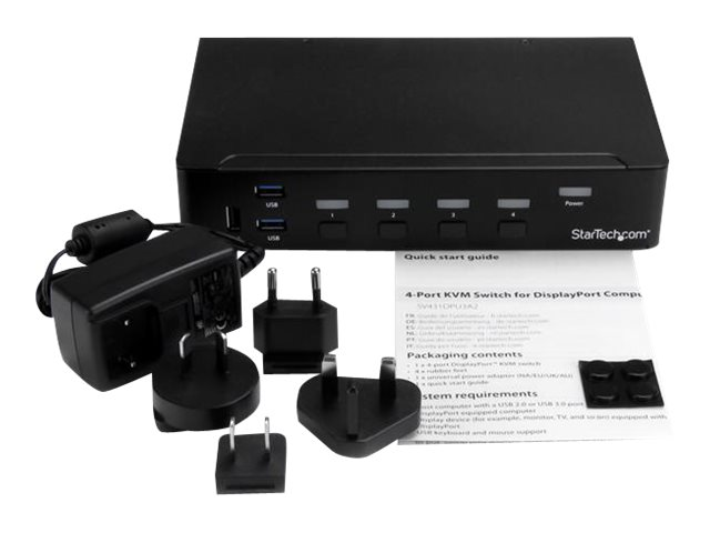 DP KVM Switch with Audio and Built-in USB 3.0 Hub for Peripherals - 4K 30Hz (SV431DPU3A2) - KVM / USB switch - 4 x KVM / audio / USB + 3 x SuperSpeed USB - 1 local user - rack-mountable - AC 120/230 V / DC 9 - 12 V - for P/N: SV431RACK
